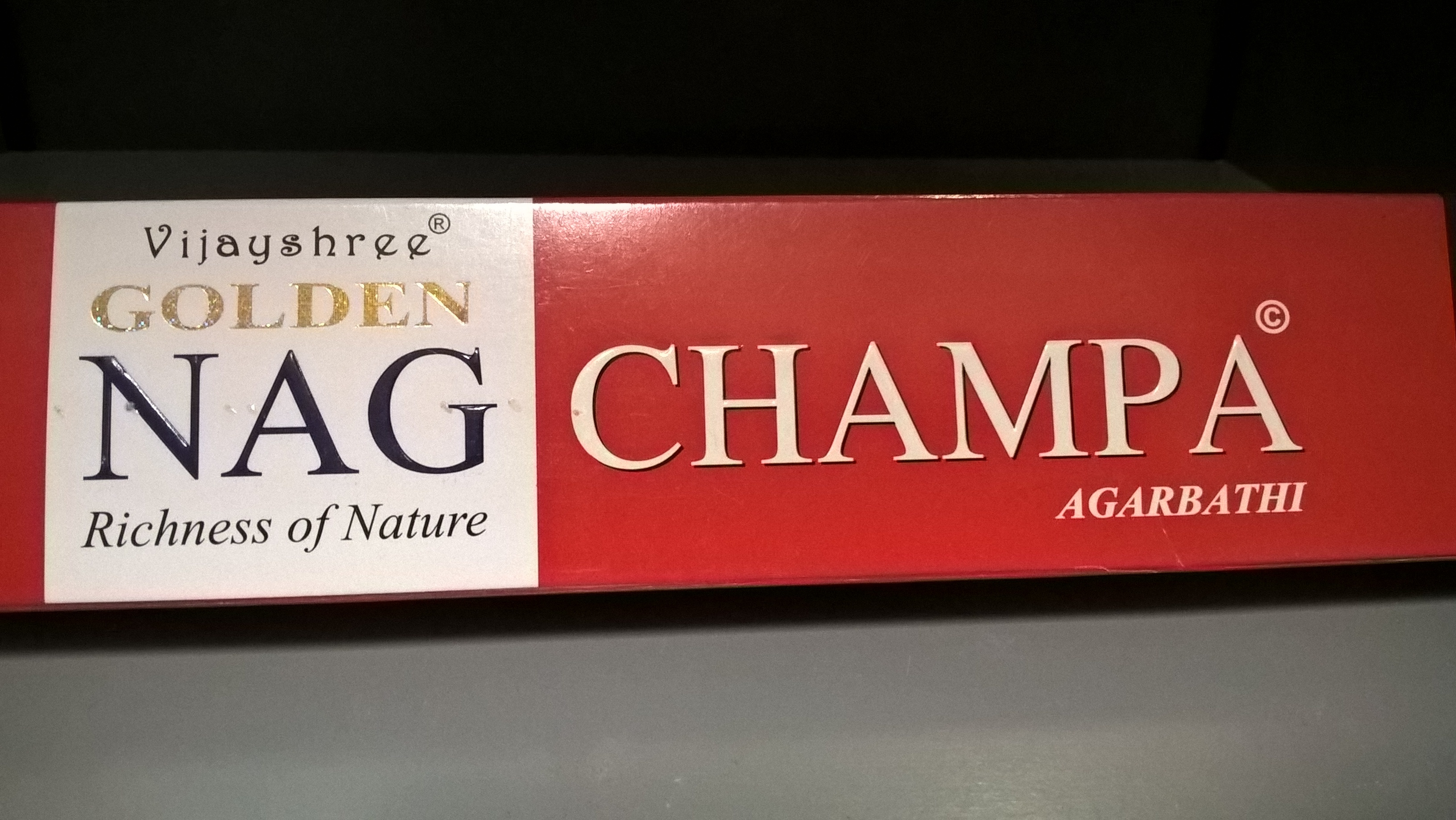 Suitsuke "Golden Nag Champa". Pakkauksessa 15 g.