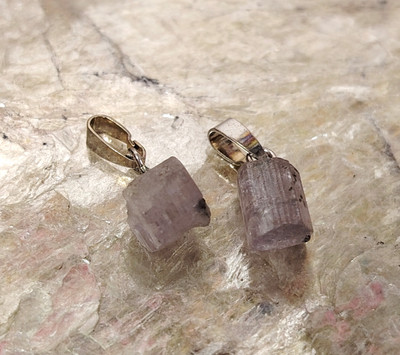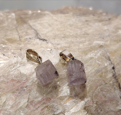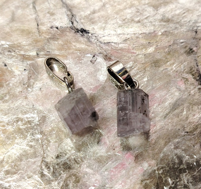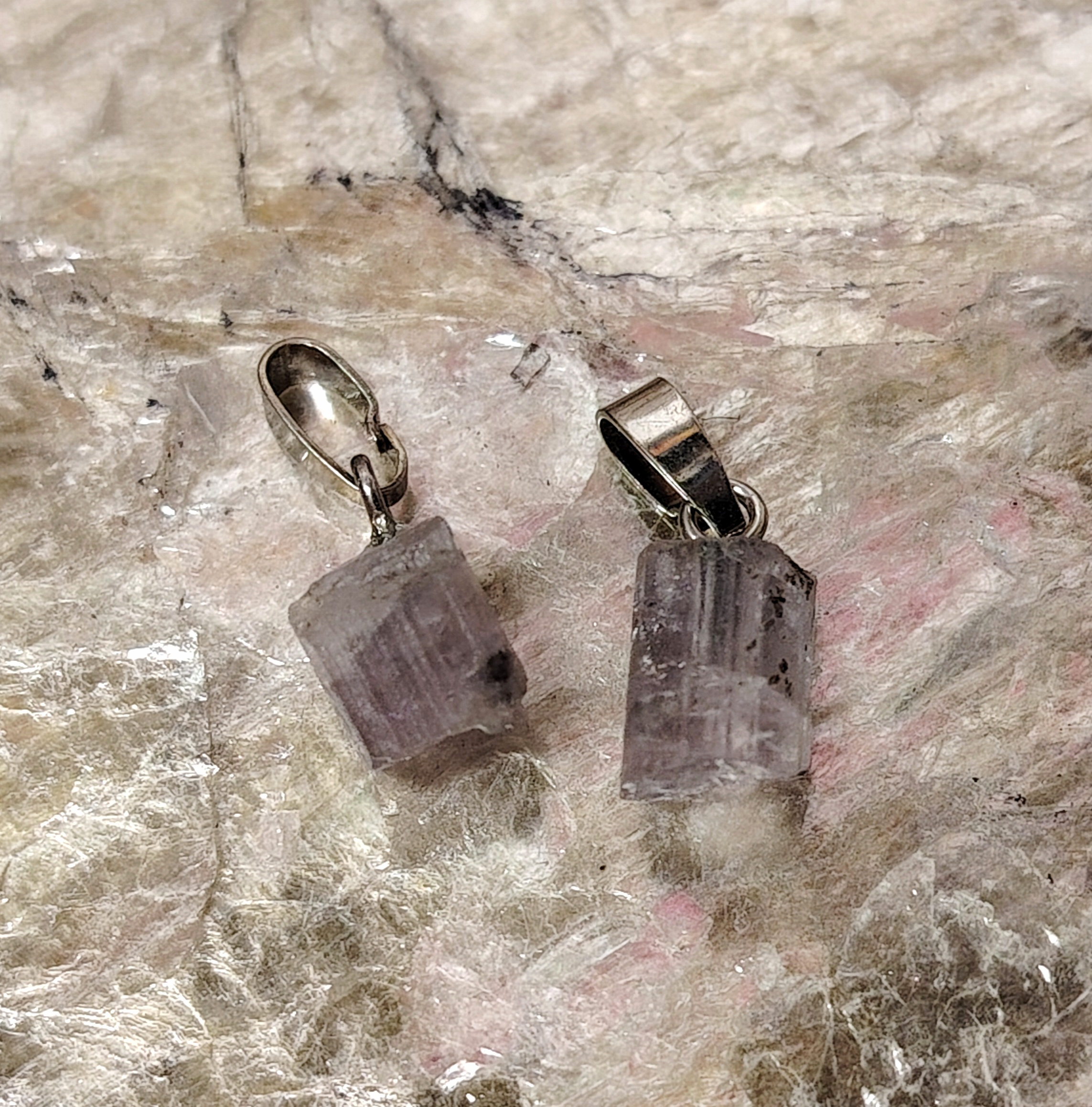 Ihastuttava skapoliitti kristalli hopeisella riipuslenkillä