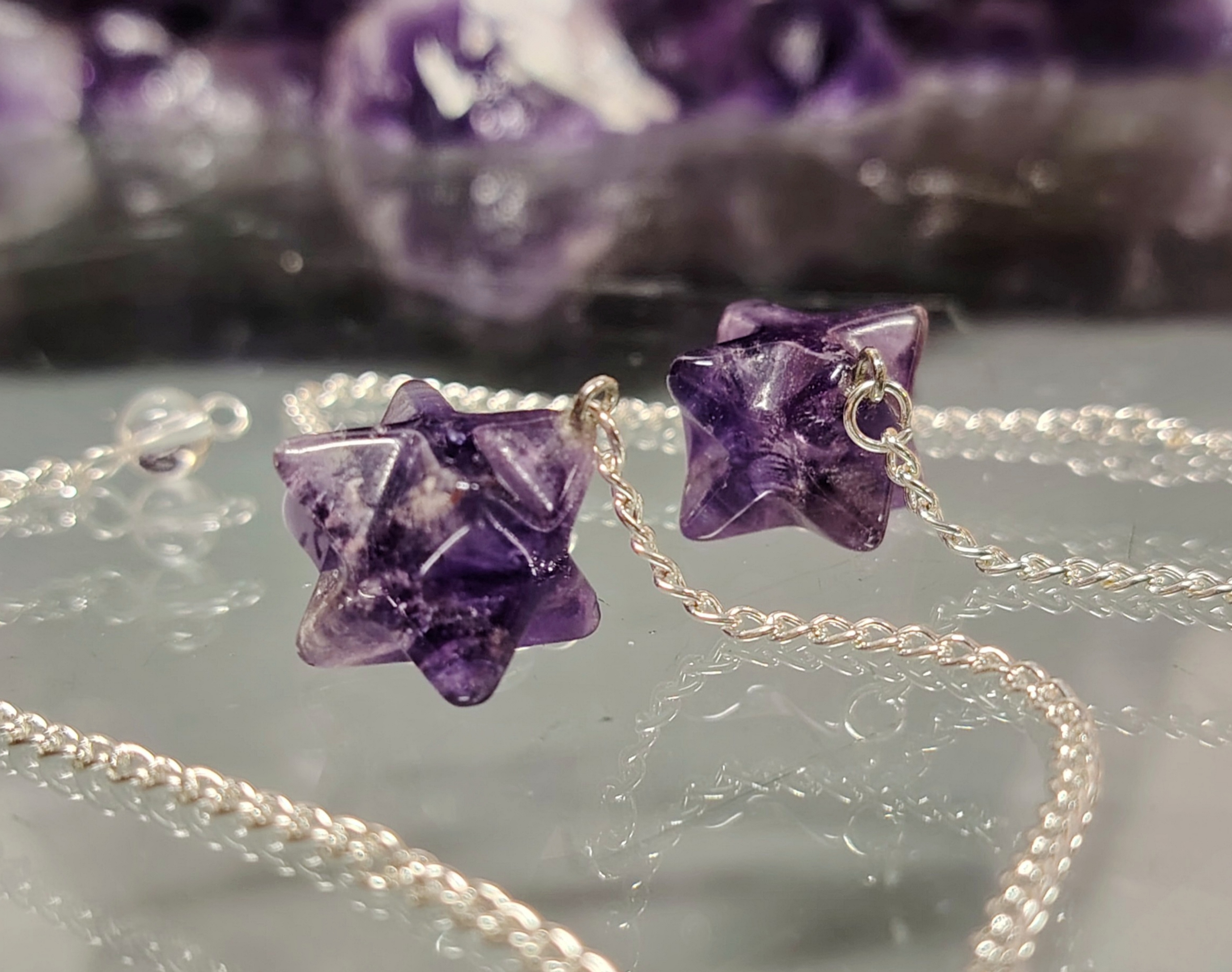 Merkaban muotoon hiottu ametisti heiluri