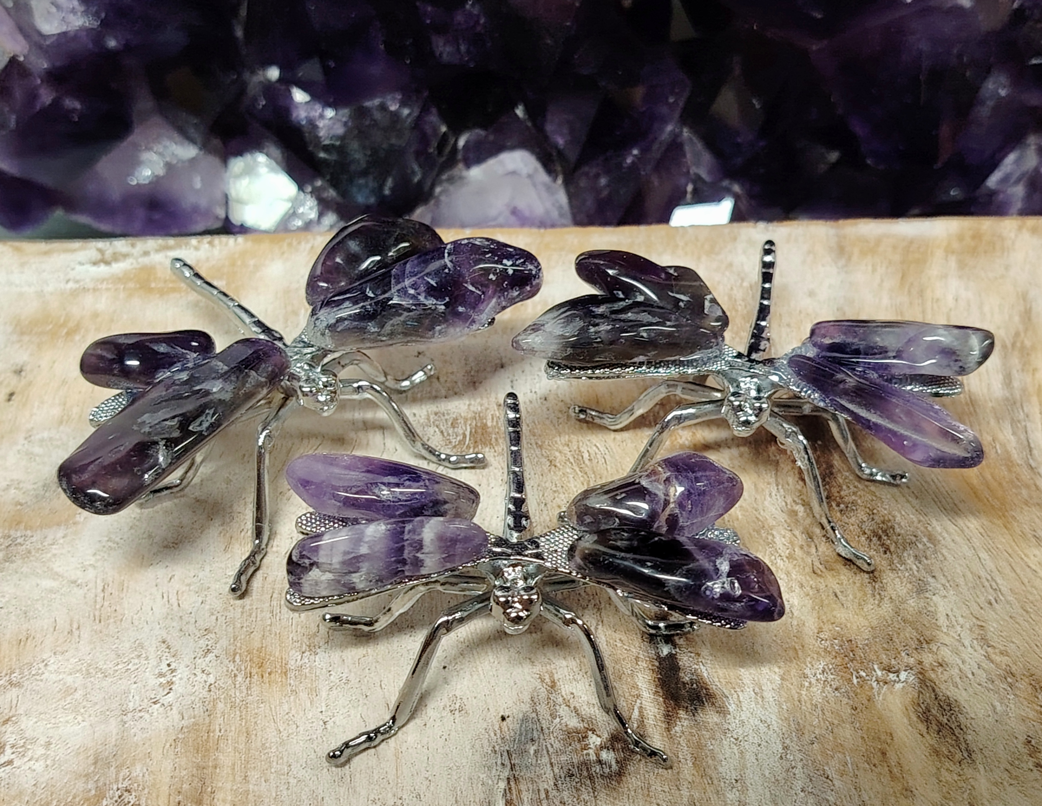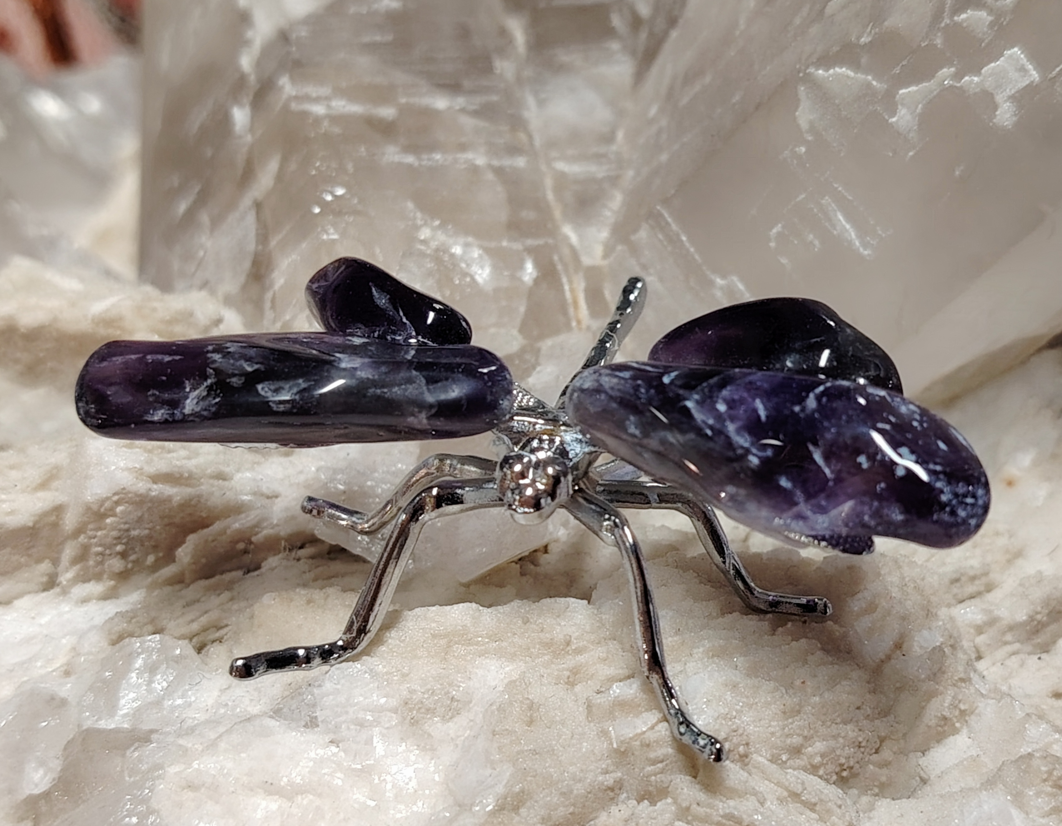 Ihastuttava ametistista ja metallista valmistettu sudenkorento