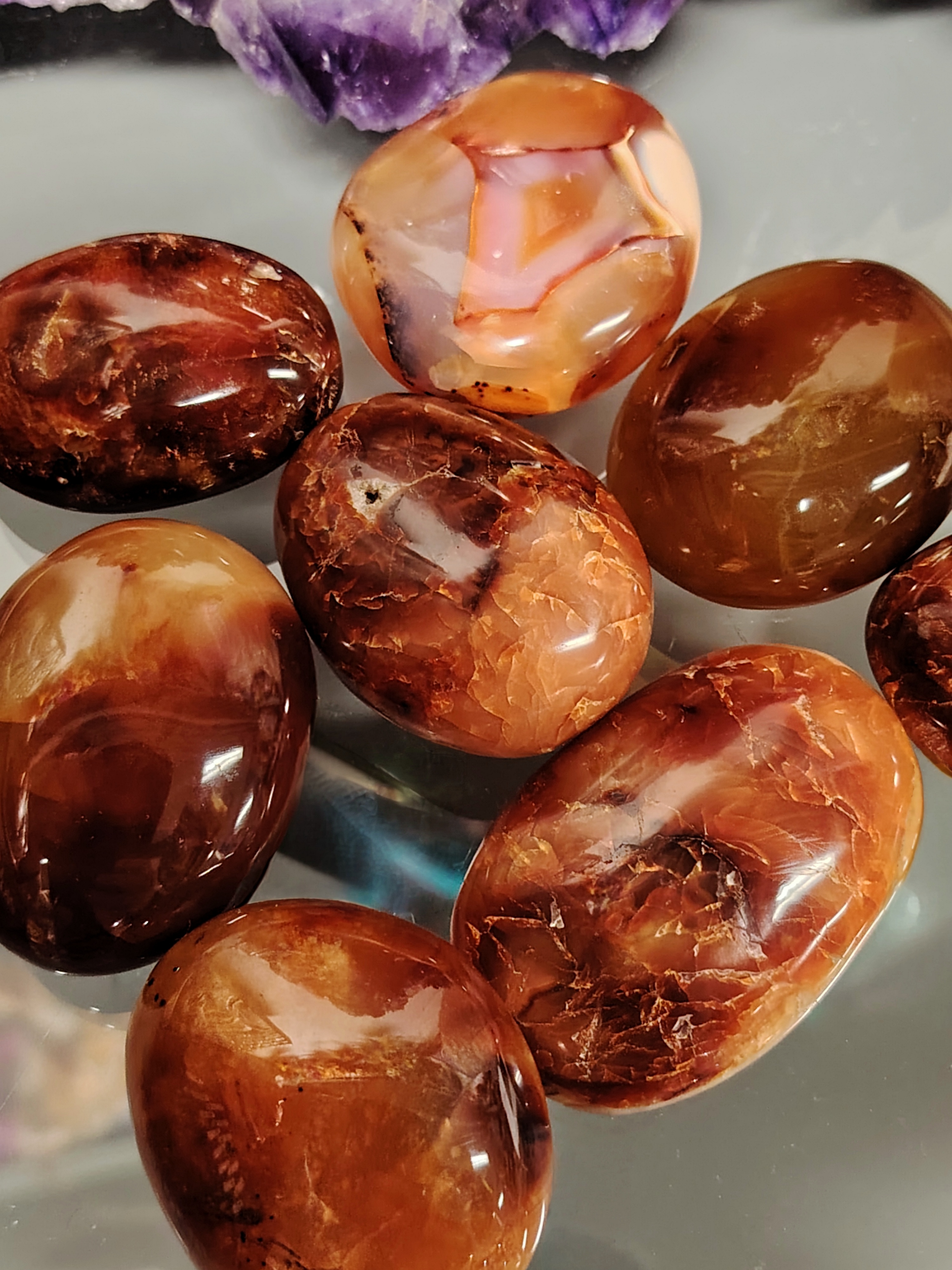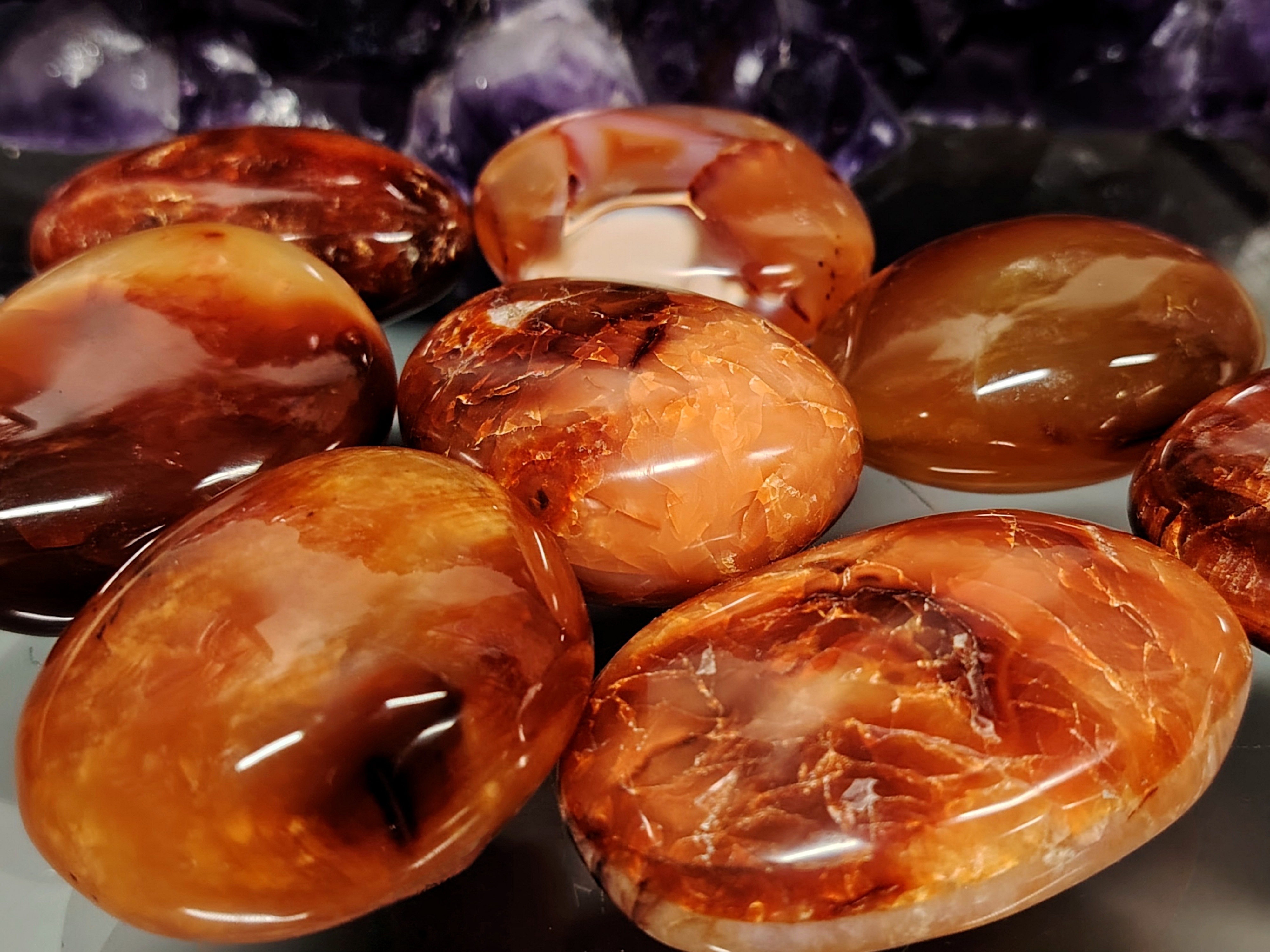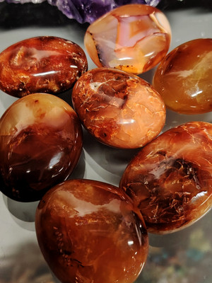 Näiden karneolien koko vaihtelee 50-60 mm.