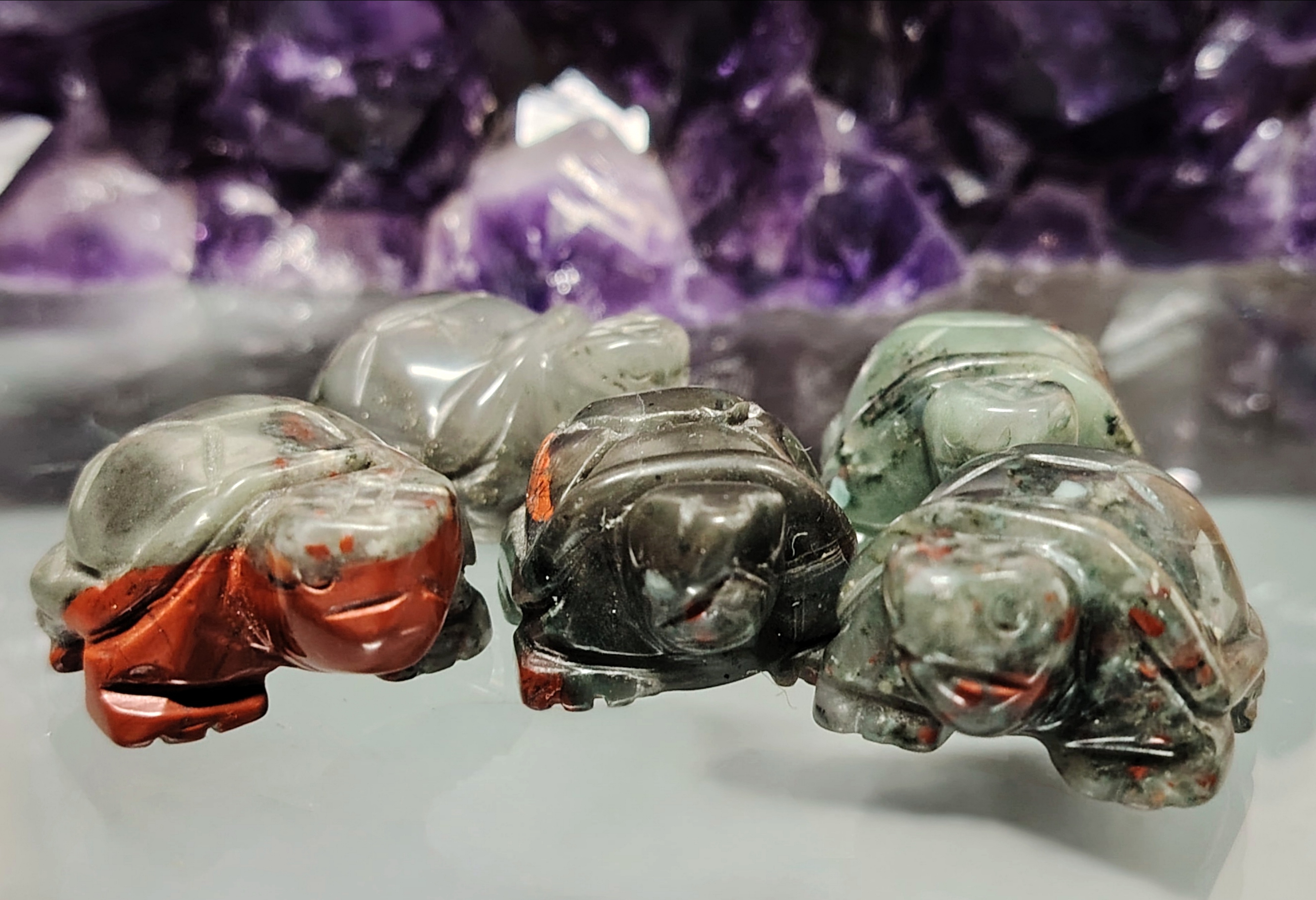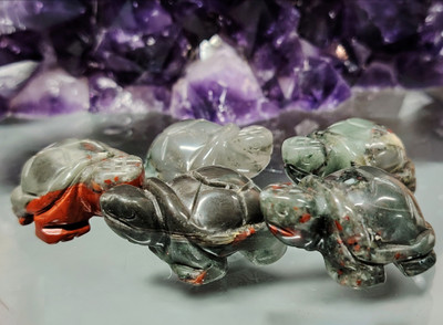 Heliotroopista eli verikivestä kaiverrettu ja hiottu kaunis kilpikonna