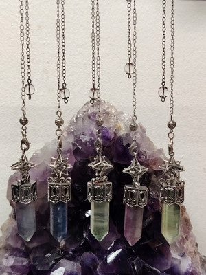 Ketjussa lukko, joten voit helposti vaihtaa kiveä tai ripustaa heilurin ranteeseen.