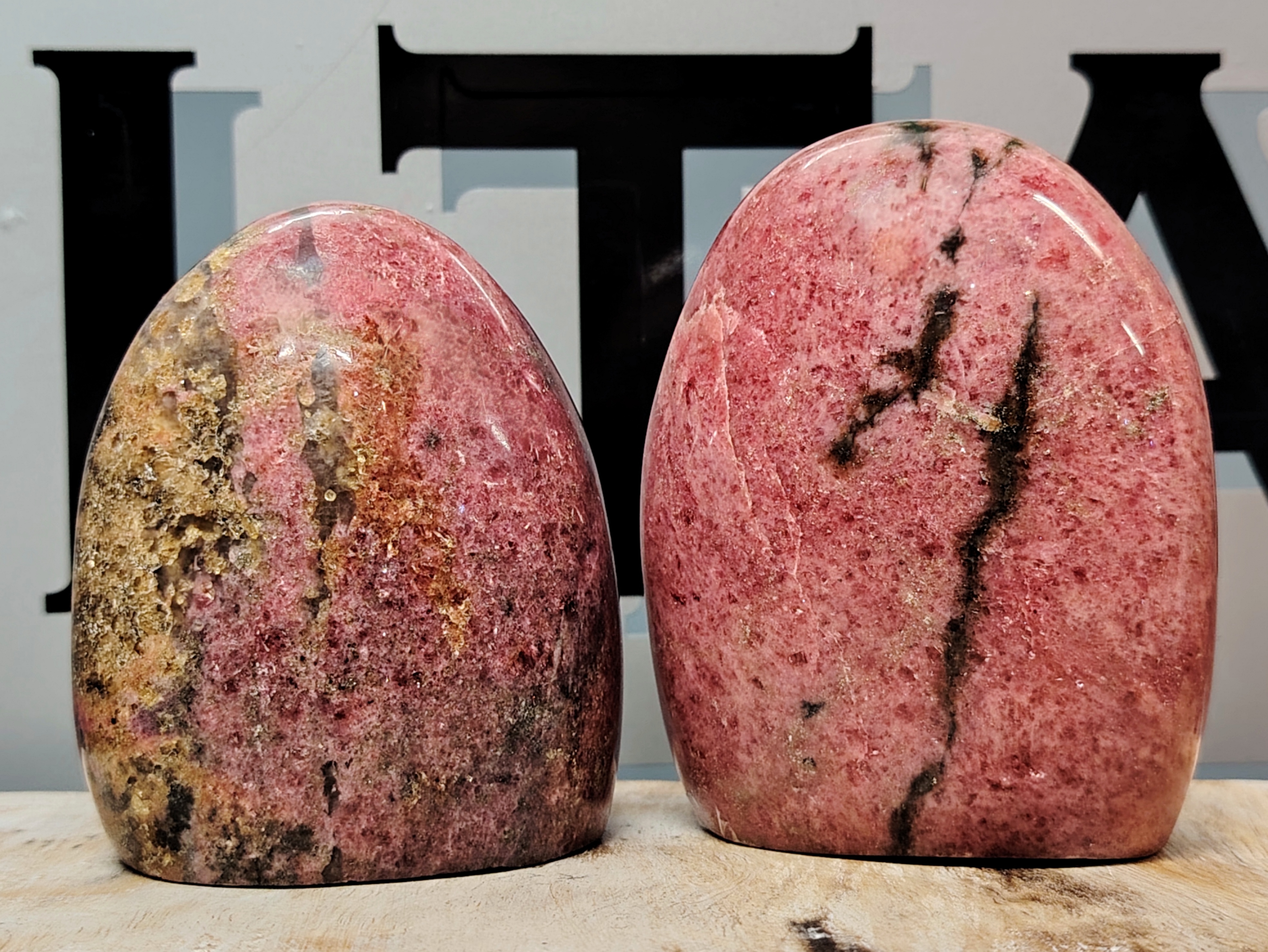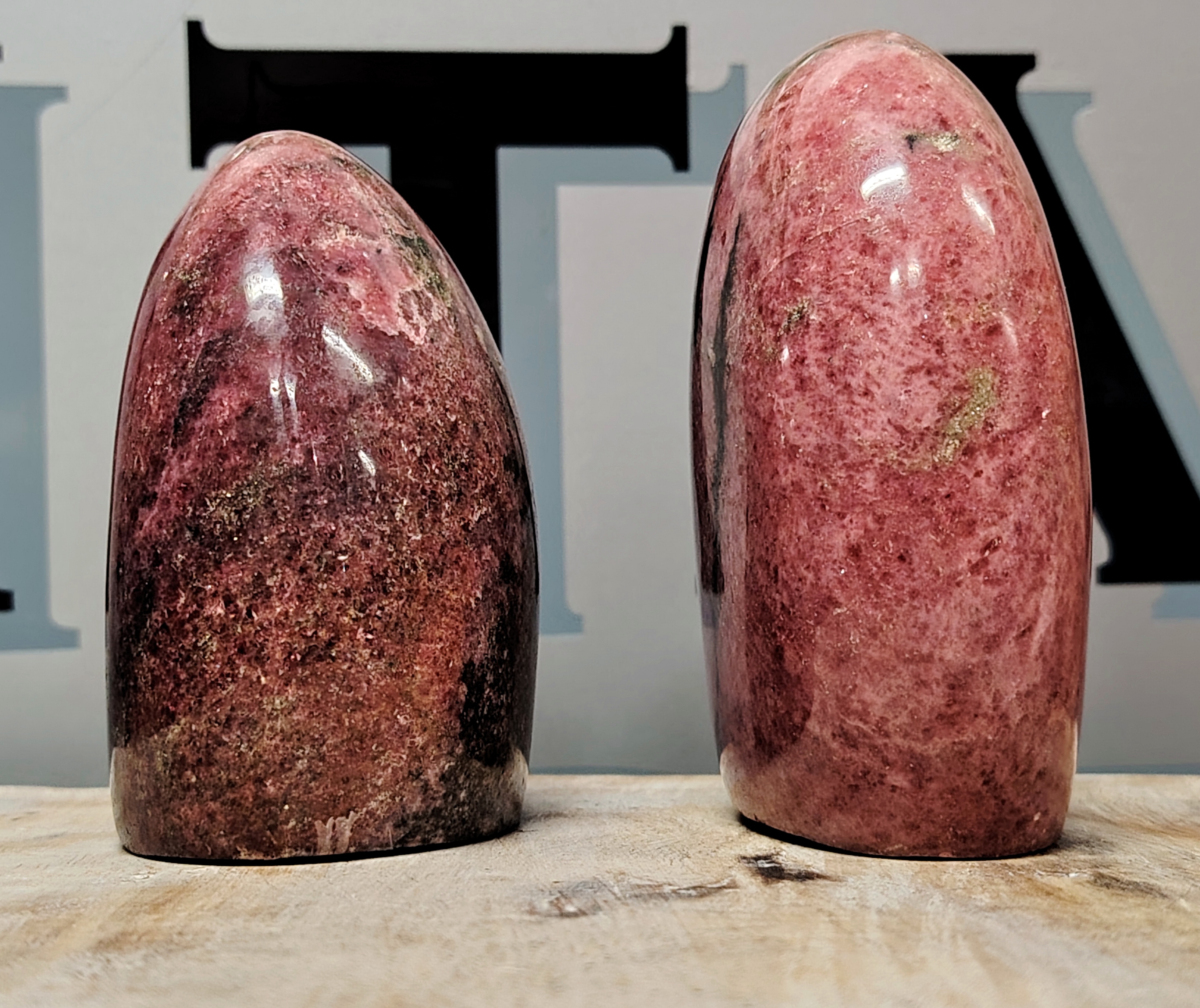 Upeanvärinen vapaamuotoisesti hiottu rodoniitti Madagasgarilta