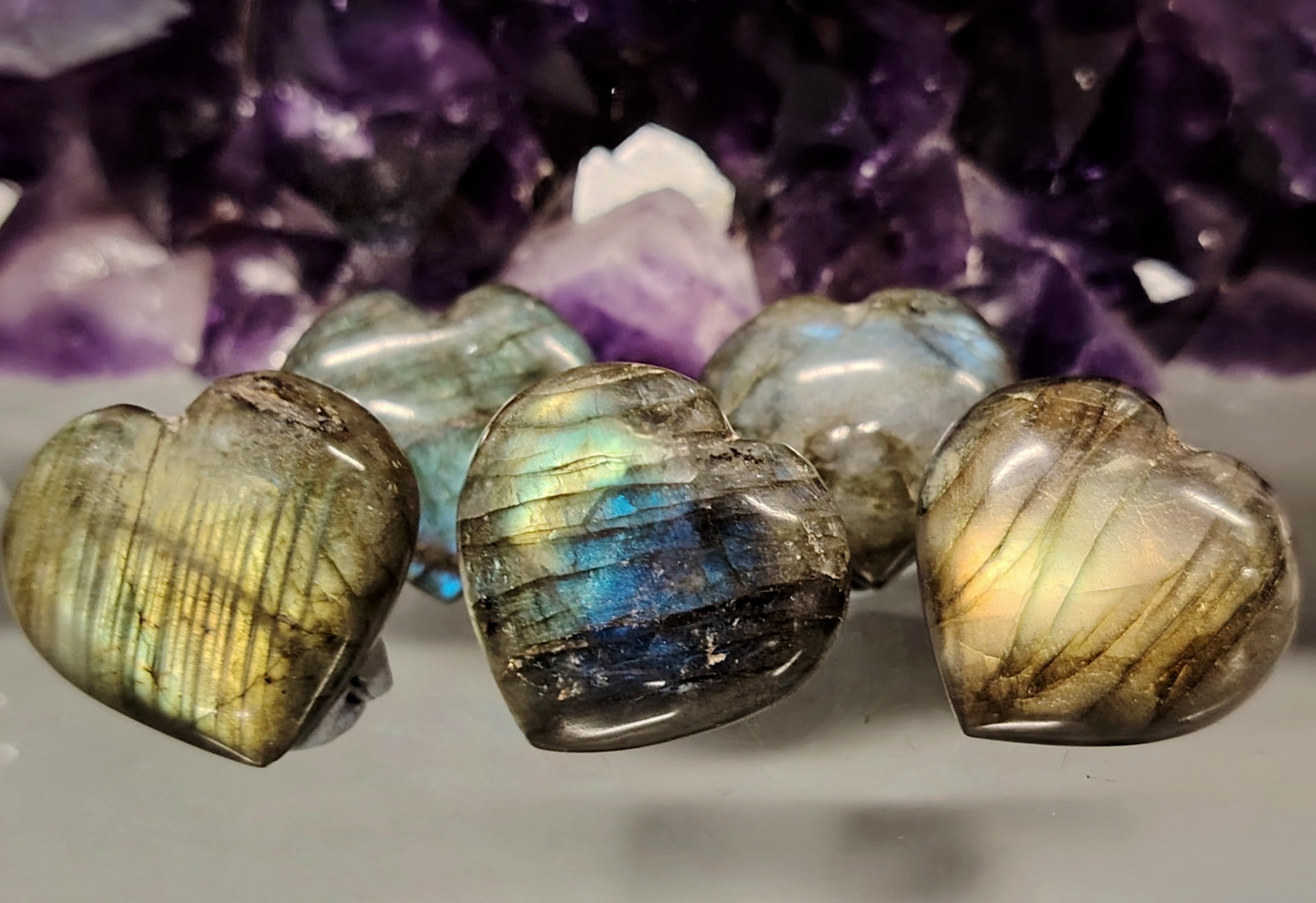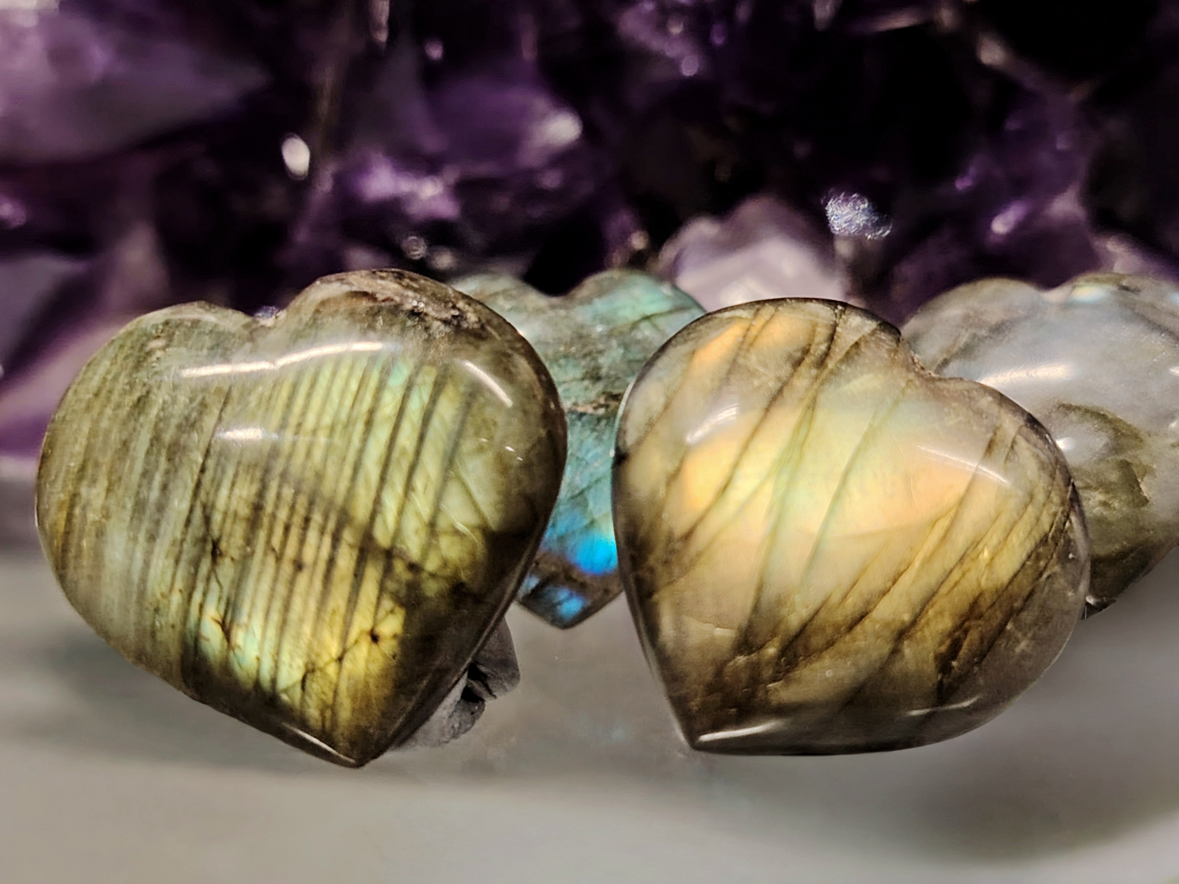 Upea labradoriitti hiottu ja kiillotettu kivisydän
