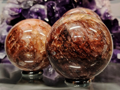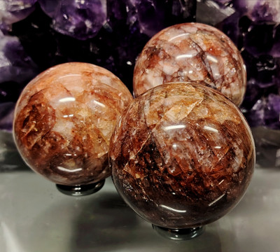 Kauniista hematoidikvartsista hiottu kivikuula