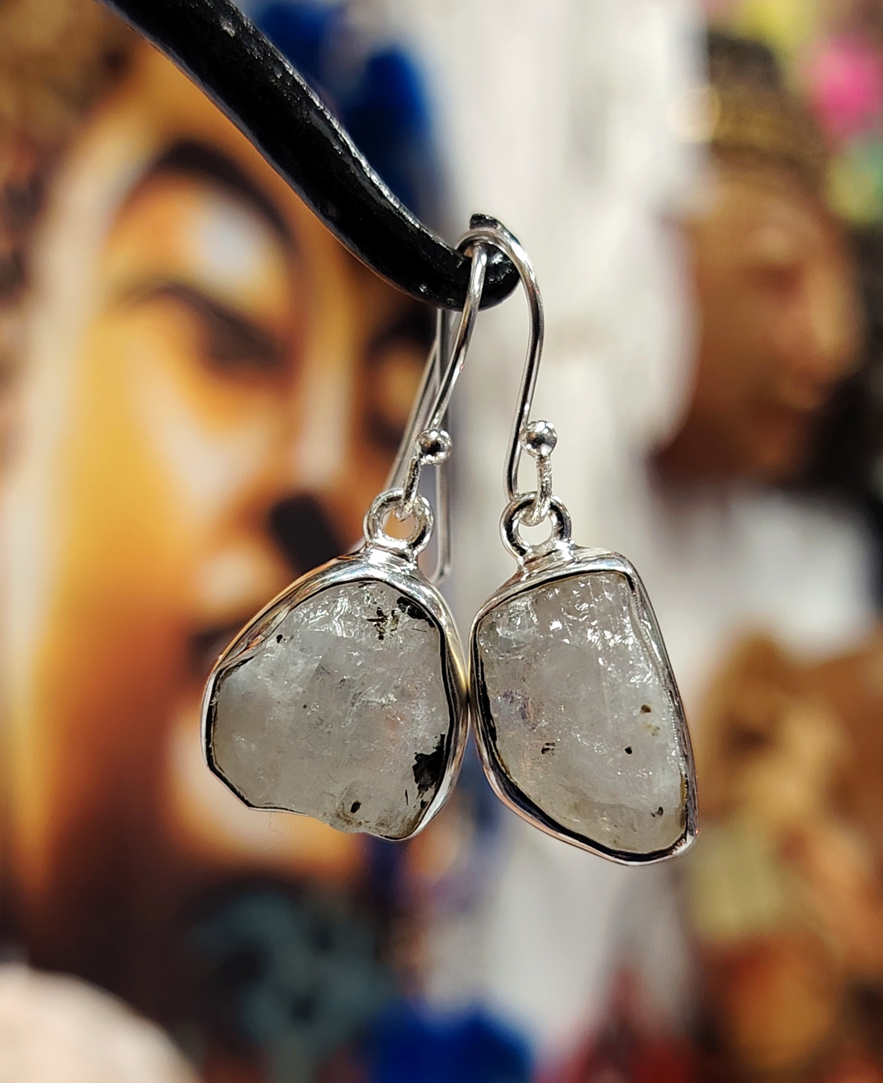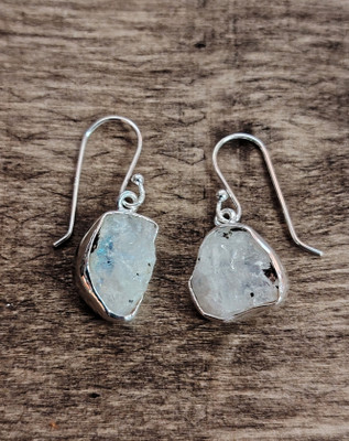 Hiomattomasta kuukivestä ja hopeasta valmistetut kivikorvikset