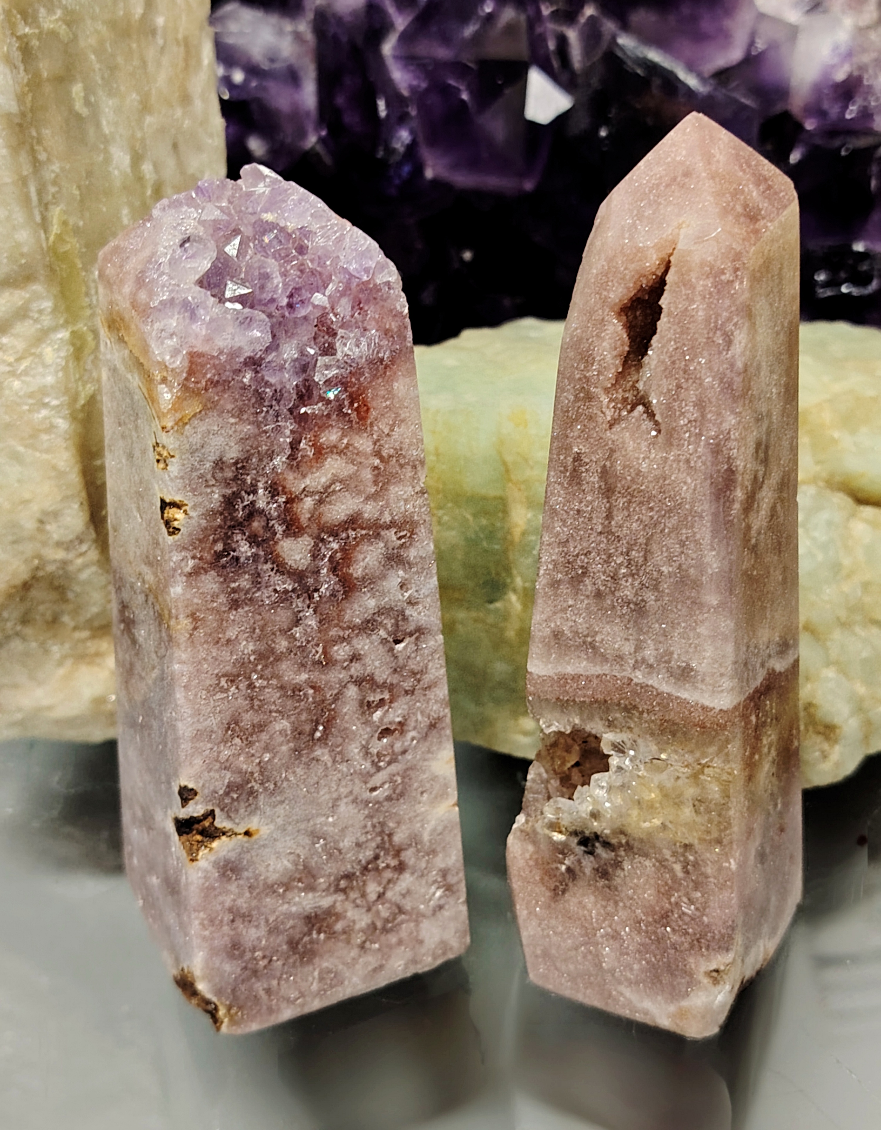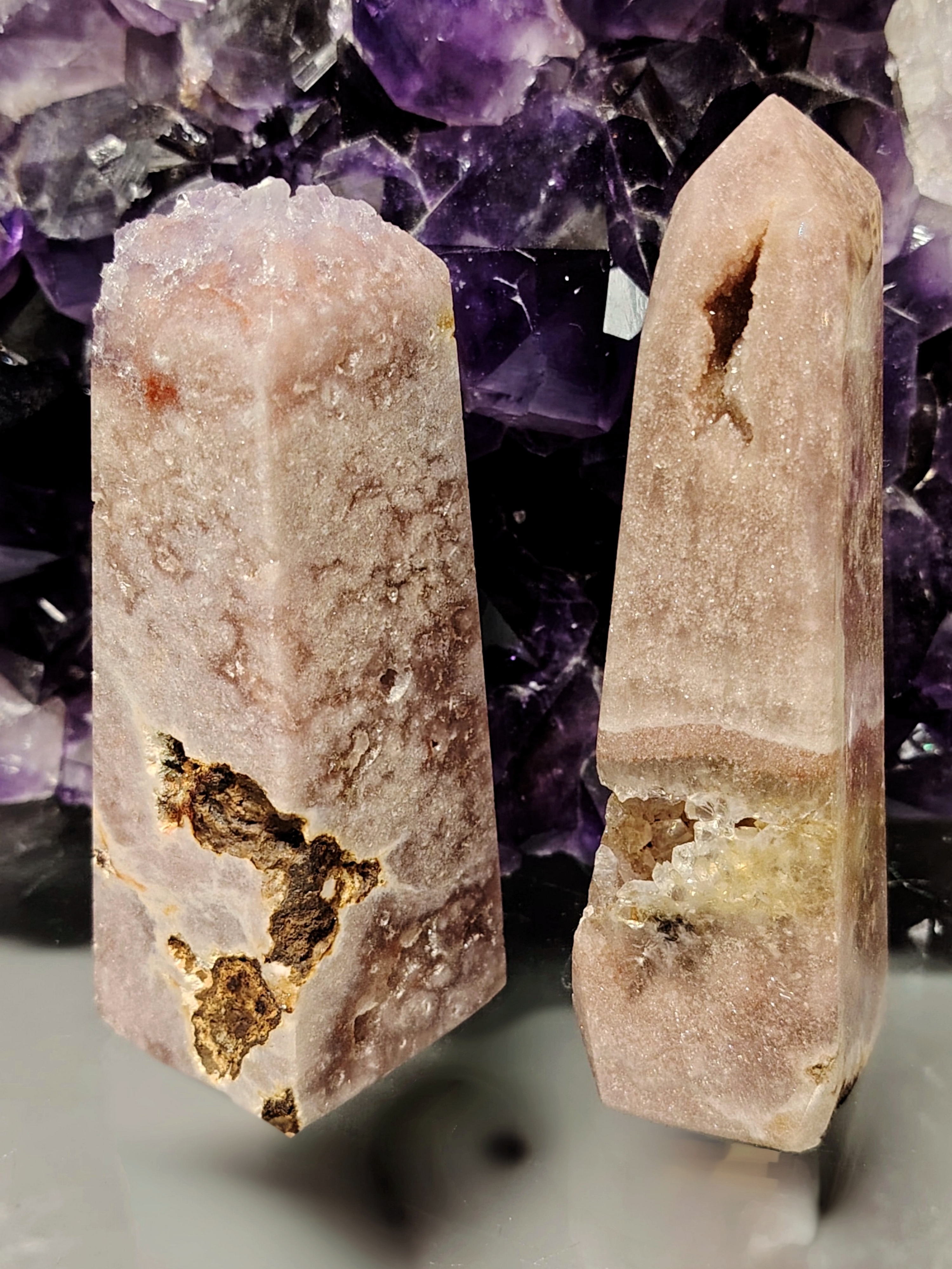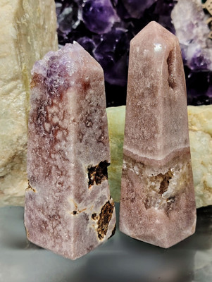 Harvinaisempi pinkki ametisti hiottuna obeliskin muotoon