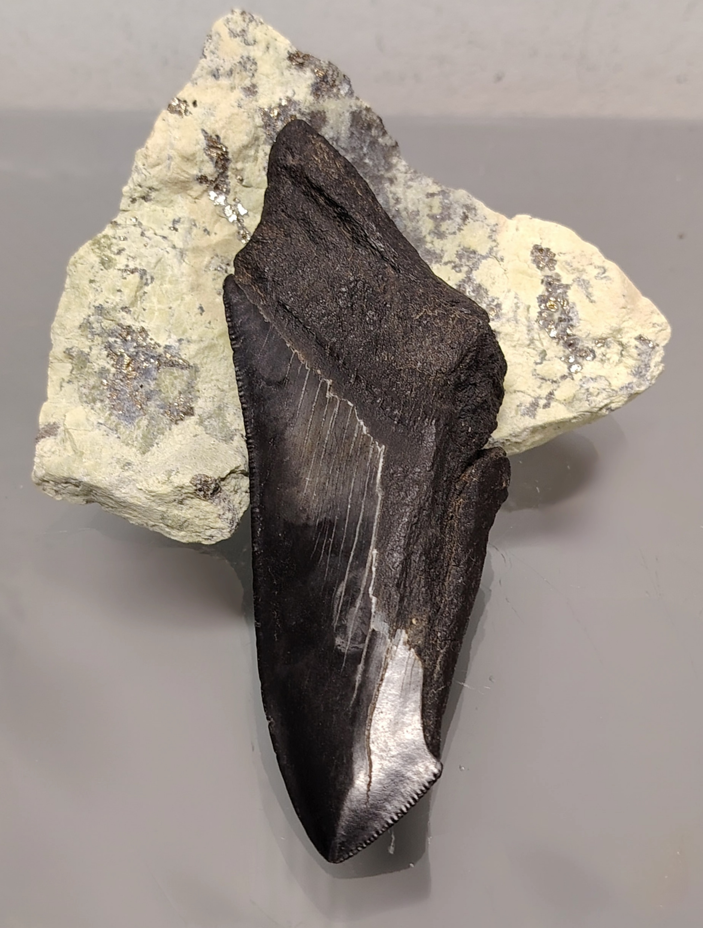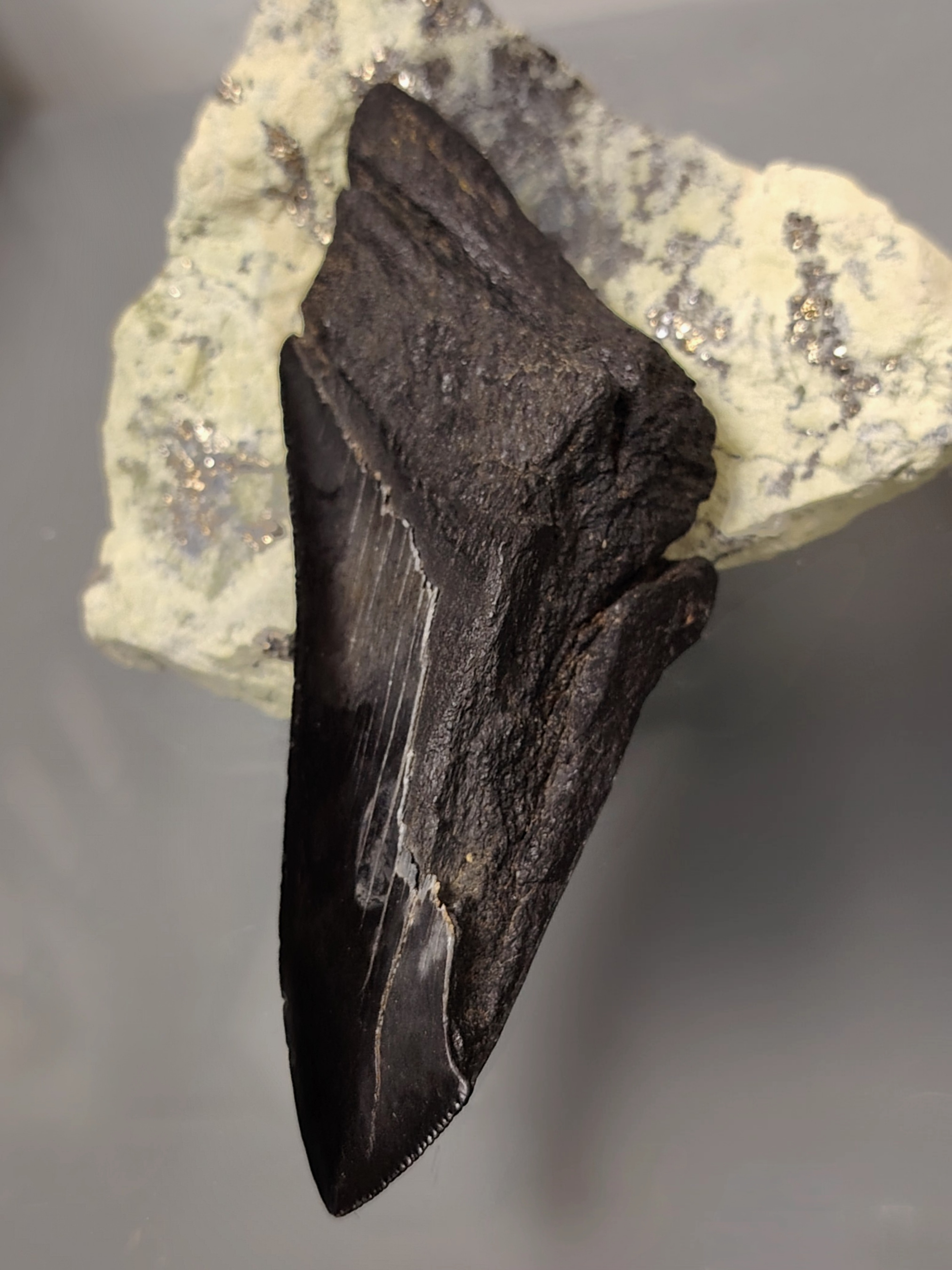 Tämä kuvanmukainen megalodonin hammas fossiili on kooltaan noin 50/130/30mm.
